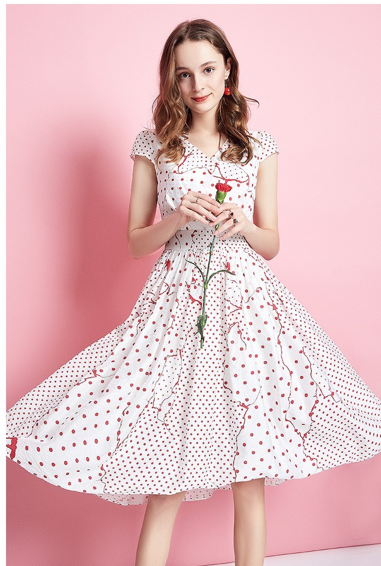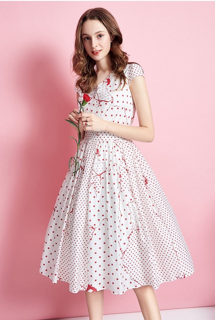 Spot print Midi length V neck