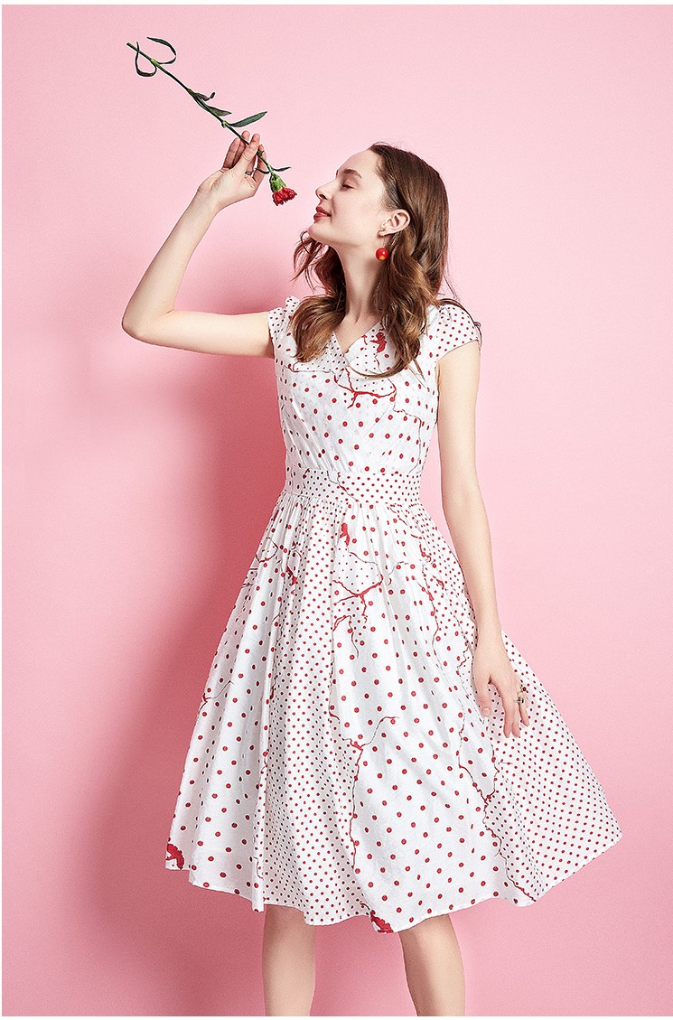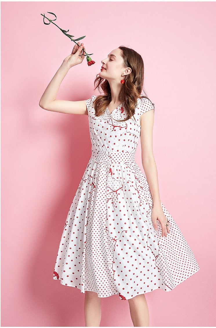 ARTKA MIXED SPOT PRINT MIDI SKATER DRESS