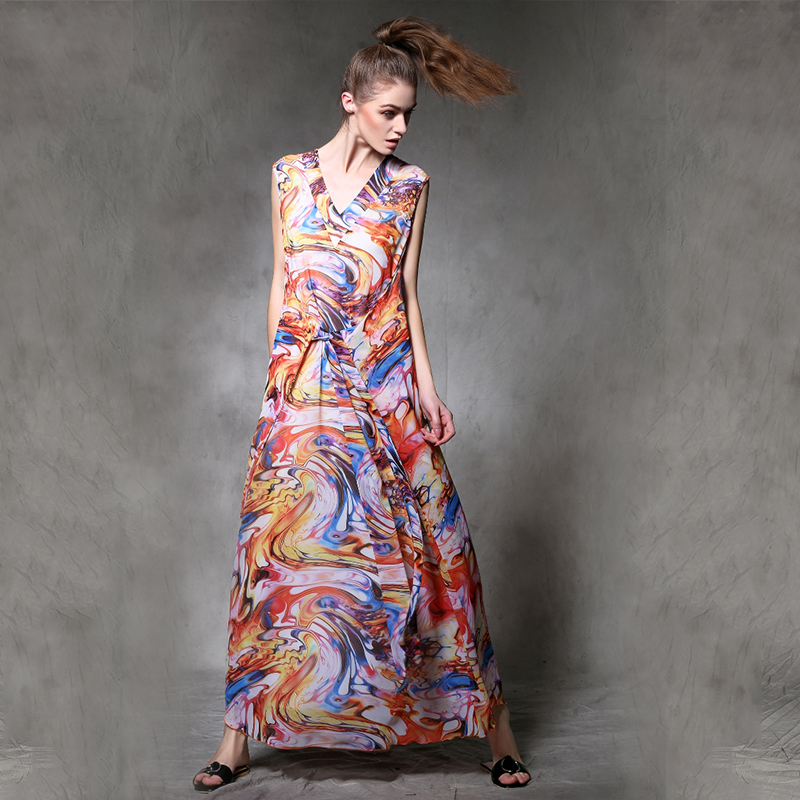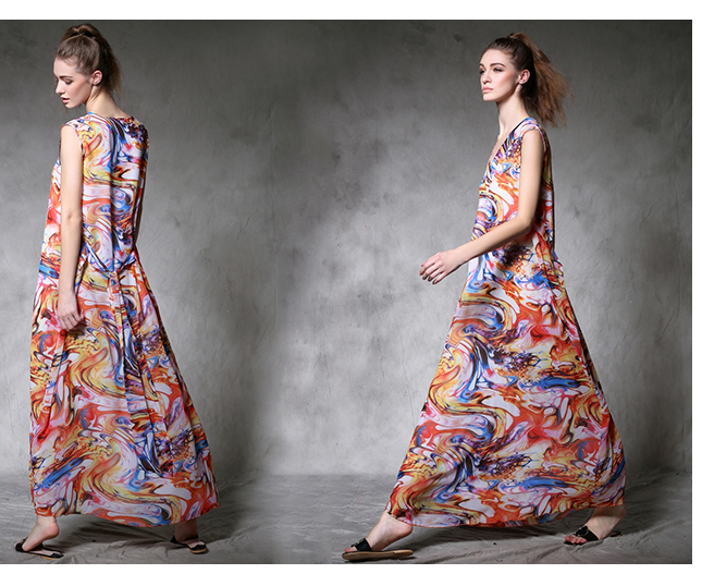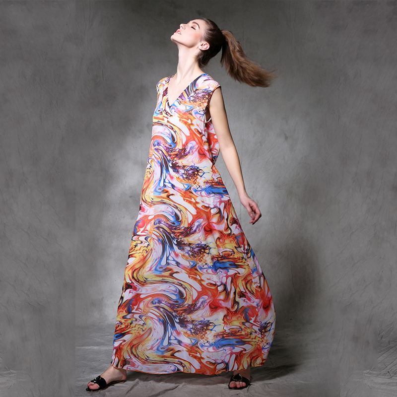 C4MORE HIPSTER LONDON URBAN STYLE V NECK LONG DRESS
