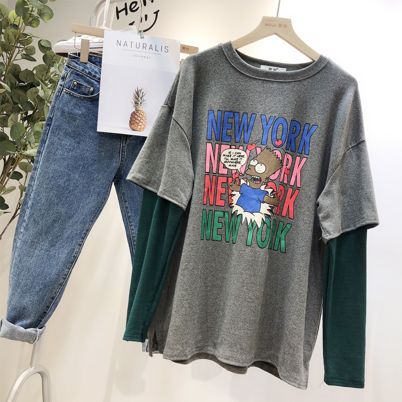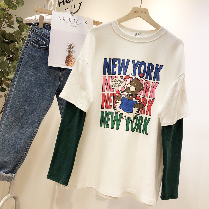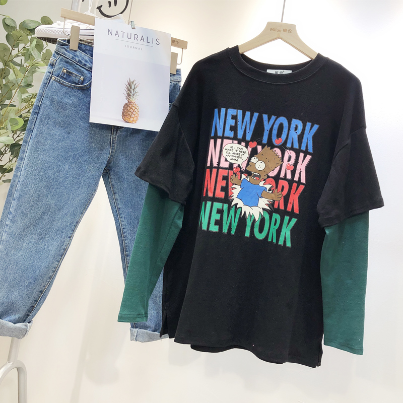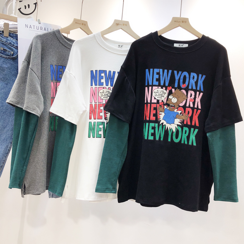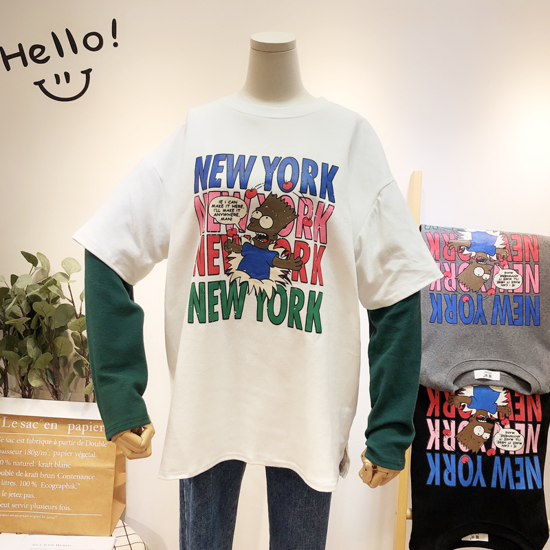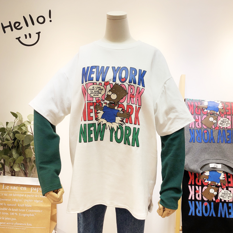 BOOPDO DESIGN NEW YORK LARGE PRINT DOUBLE LAYERED LONG SLEEVE T SHIRT