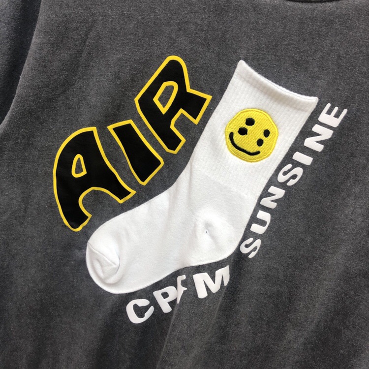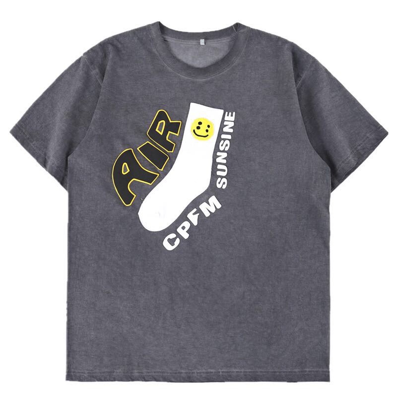 ESSENTIX AIR SUNSHINE SMILEY FACE SOCK ATTACHED BASIC UNISEX T SHIRT