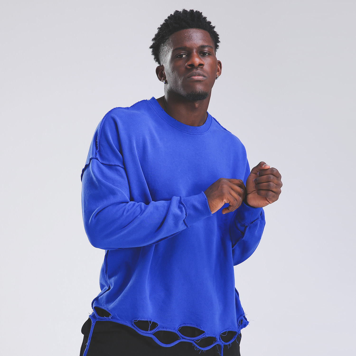 IRON LIFE FITNESS PERFORMANCE SPORTSWEAR RIPPED ASYMMETRIC SWEATSHIRTS