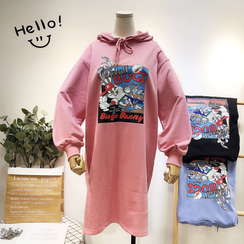 BOOPDO DESIGN BUNNY PRINT HOODIE DRESS