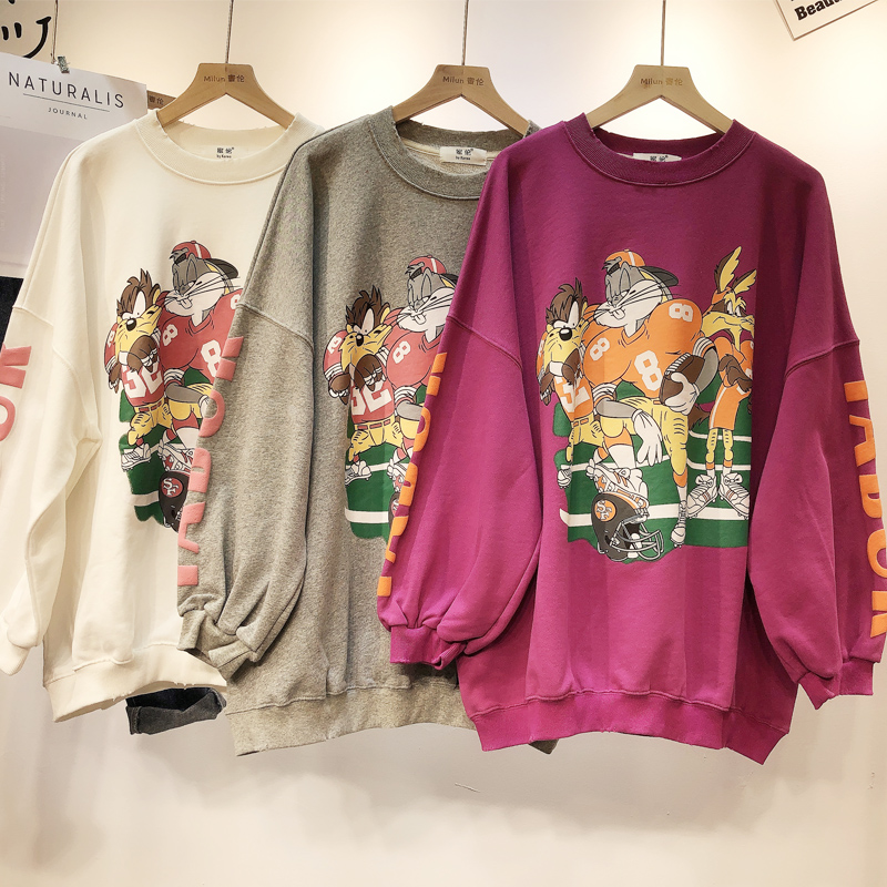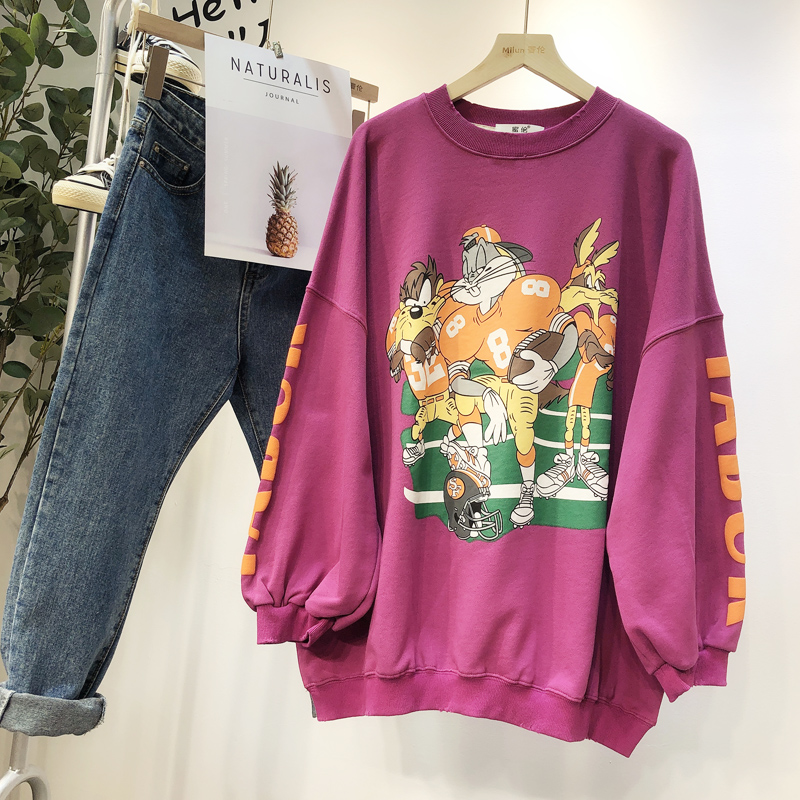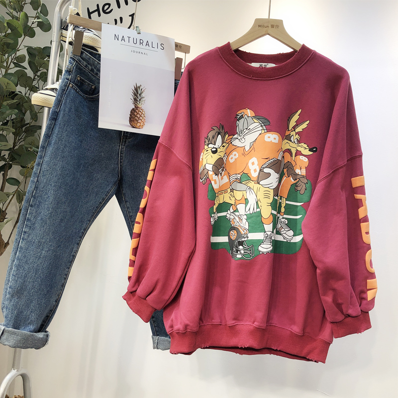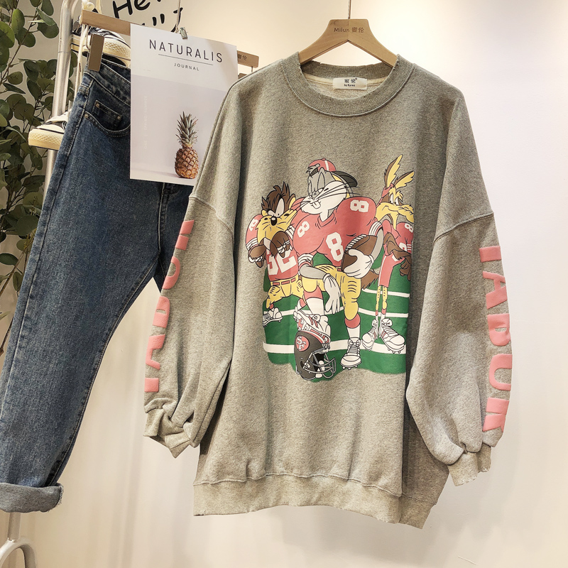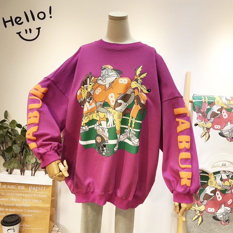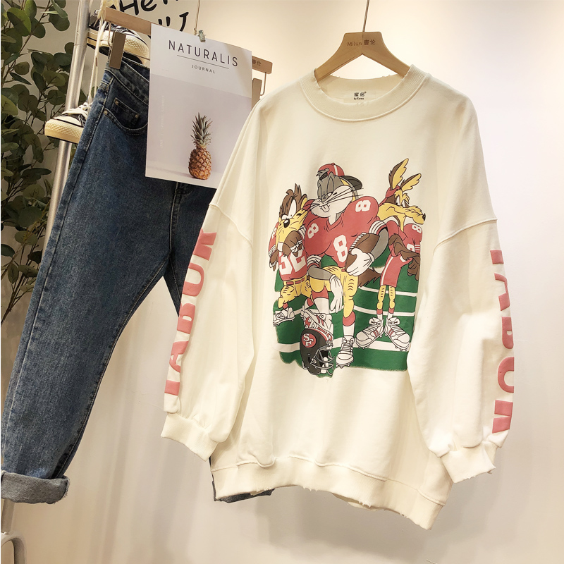 BOOPDO DESIGN LARGE FRONT AND SLEEVE PRINT OVERSIZED SWEATSHIRT