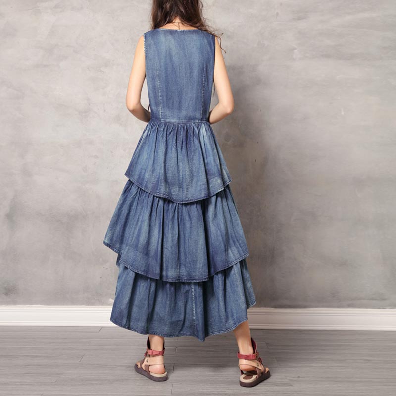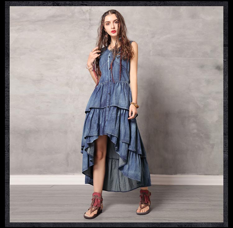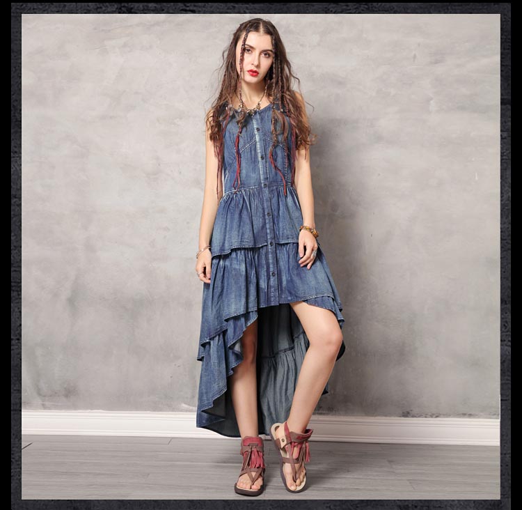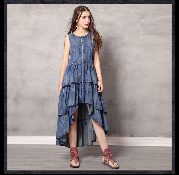 ARTKA KEER ANESTAJIA MID LENGTH ASYMMETRIC DENIM JEAN DRESS