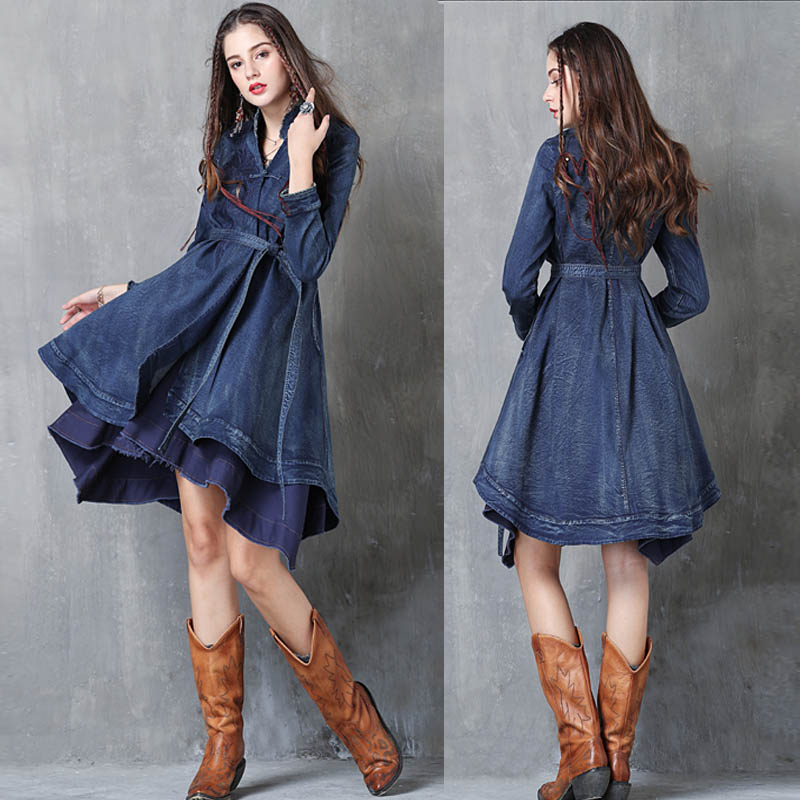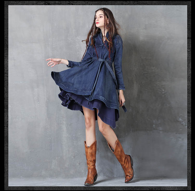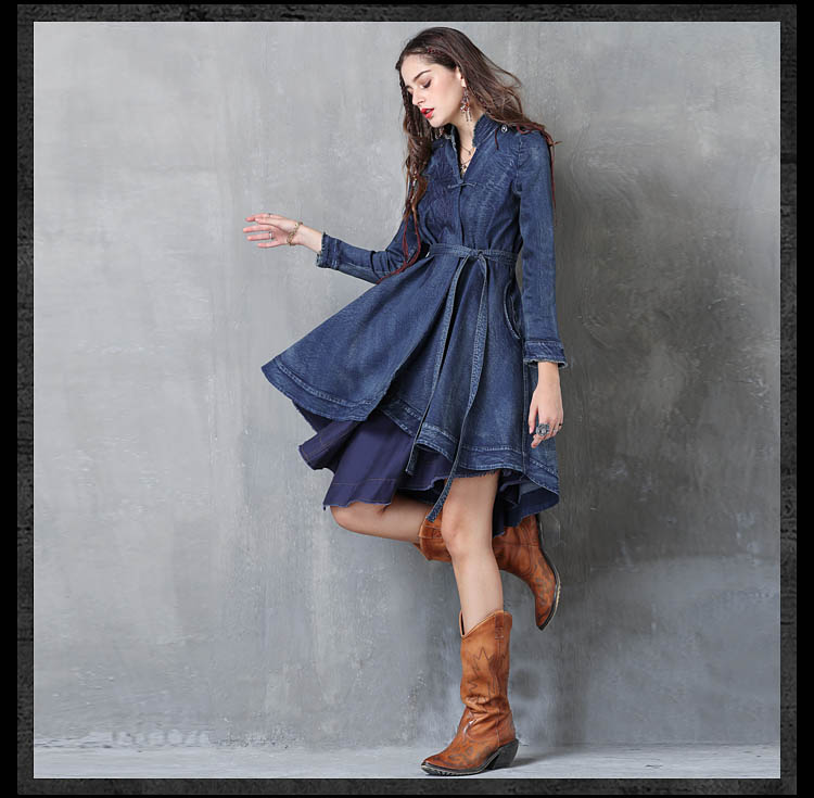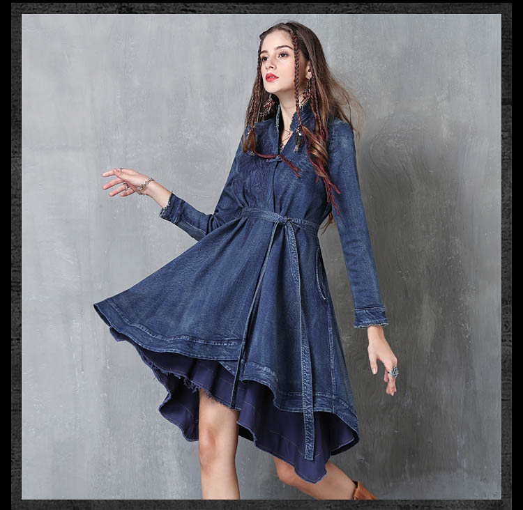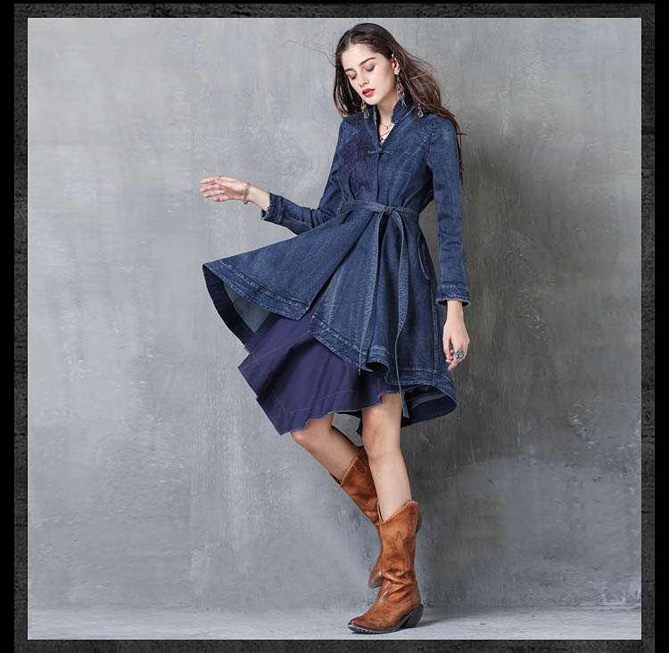 ARTKA ALEXANDER KEER HIGH COLLAR MID LENGTH DENIM TRENCH COAT