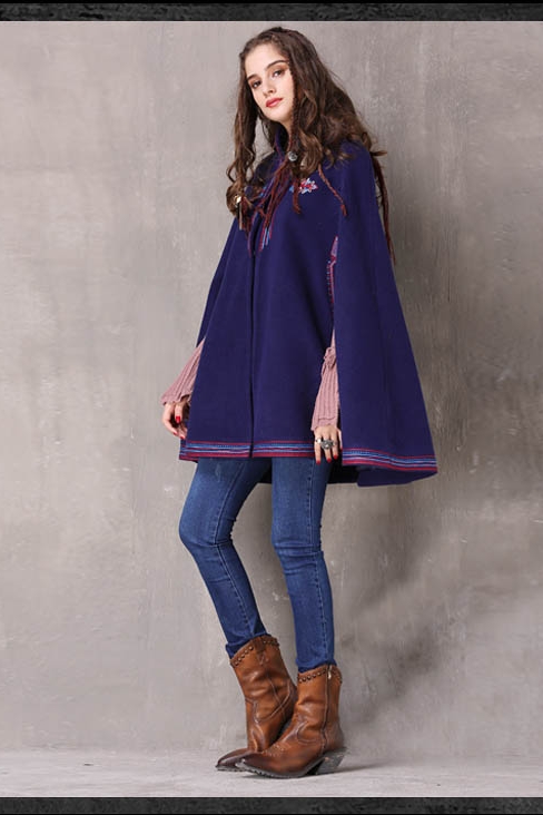 ARTKA EMILY KEER ETHNIC STYLE BAT SLEEVED WOOLEN COAT IN PURPLE