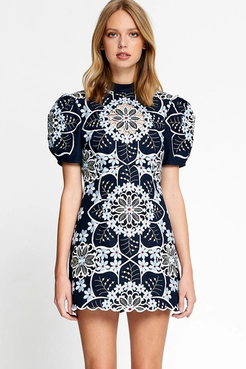 ALICE HIGH NECK EMBROIDERY MINI DRESS