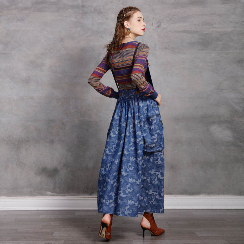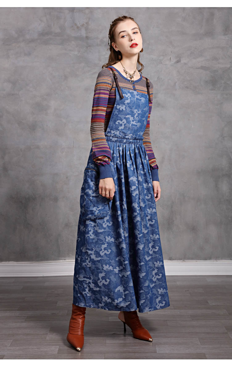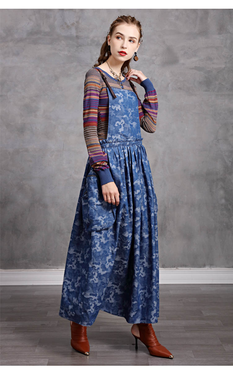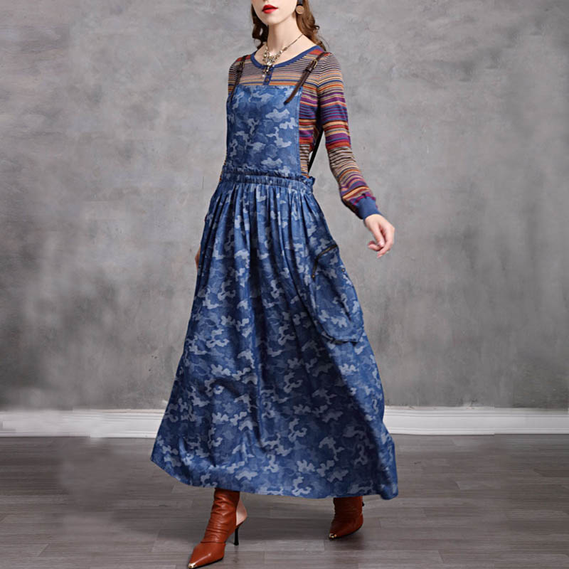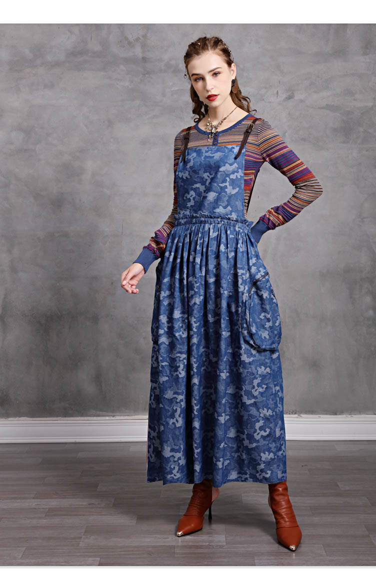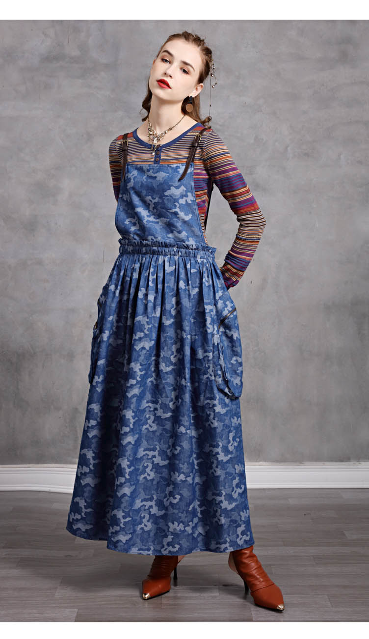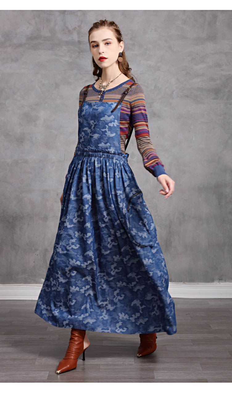 ARTKA MCKINNON KEER WESTERN STYLE DENIM JEAN MAXI DRESS WITH SUSPENDER