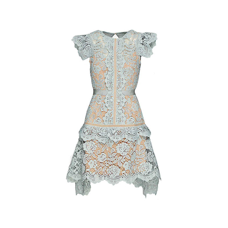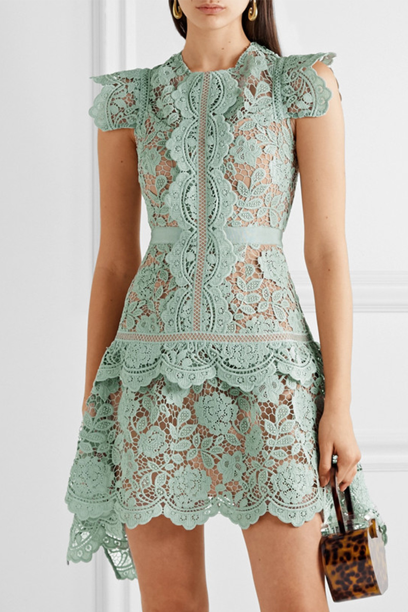 ALICE LACE RUFFLE MINI DRESS IN GREEN