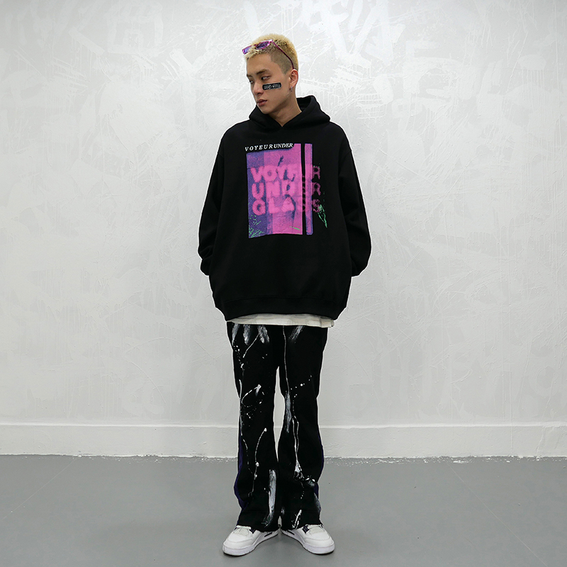 VOYEUR DAZZLE GRAFFITI PRINT URBAN STYLE HOODIE SWEATSHIRTS