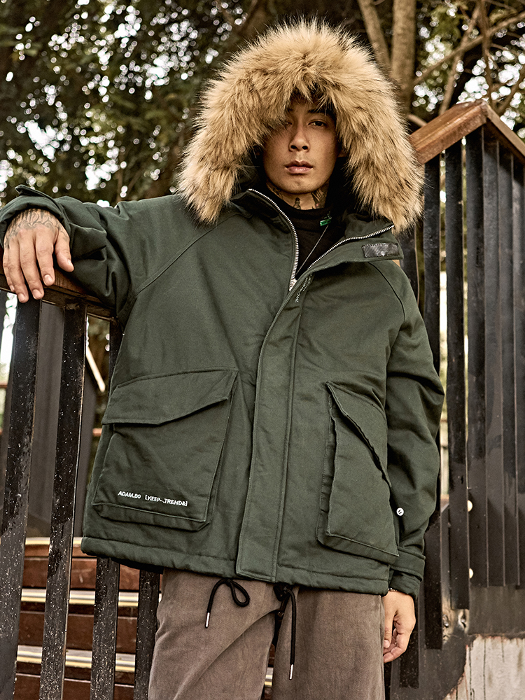ADAM MADA FONTICO FURNACE COTTON PADDED FAUX FUR COLLAR HOODED JACKET