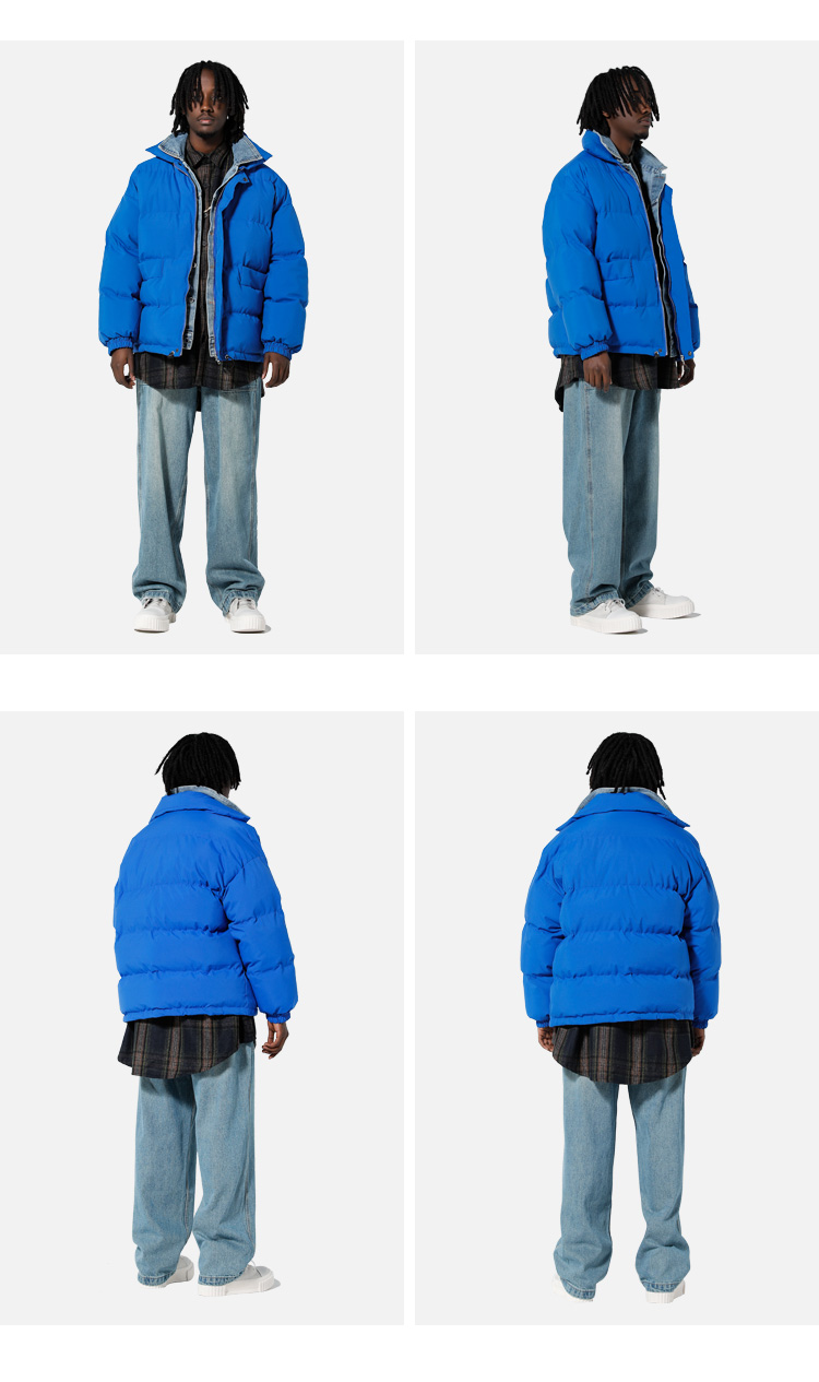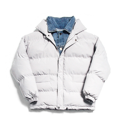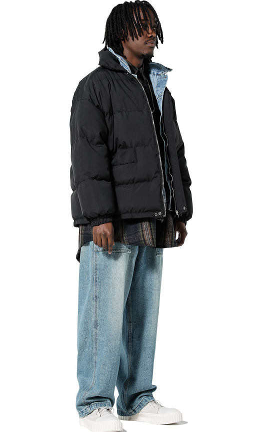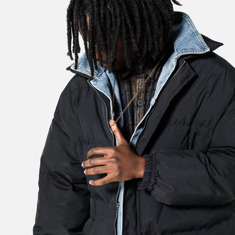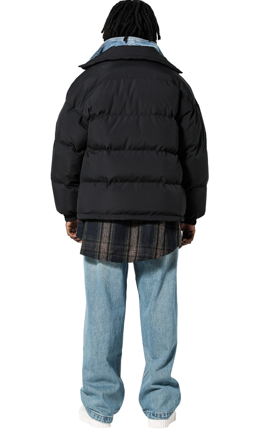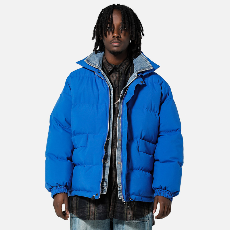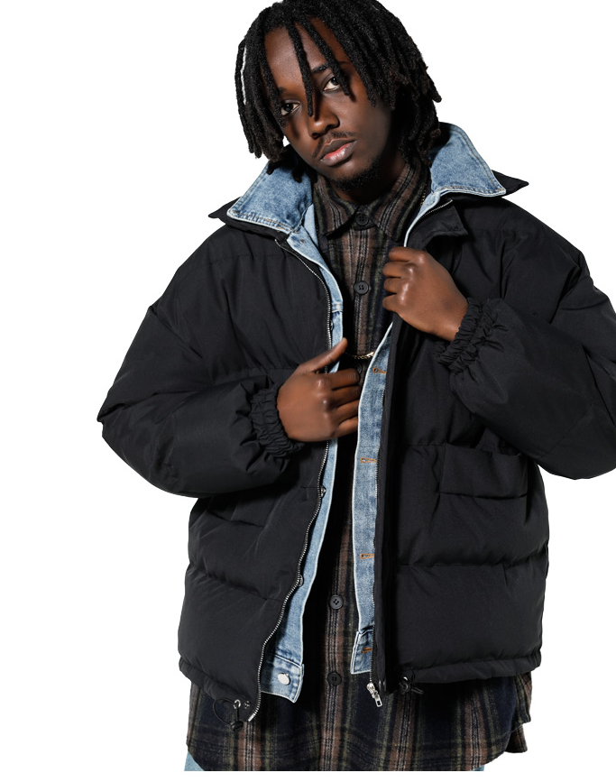 BORN TOWIN LOGO PATCH DENIM COLLAR COTTON PADDED BOMBER JACKET