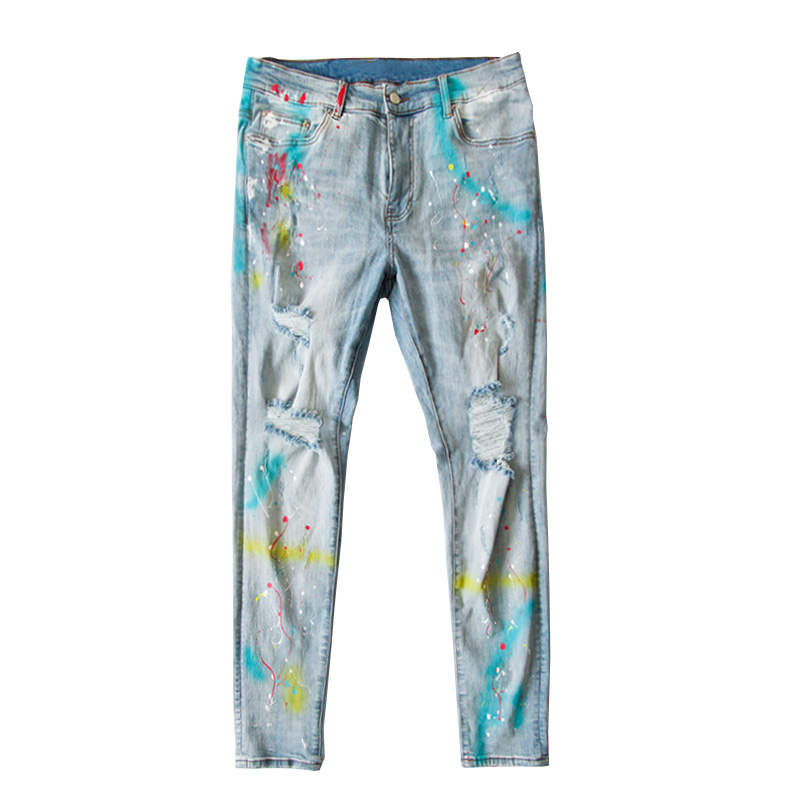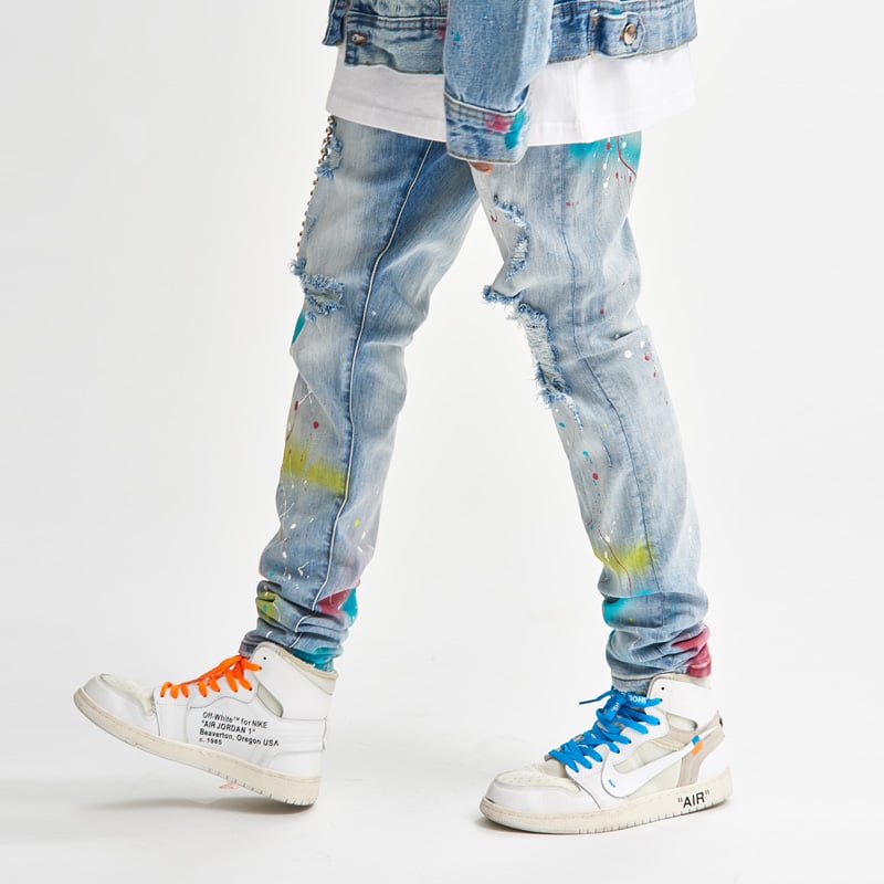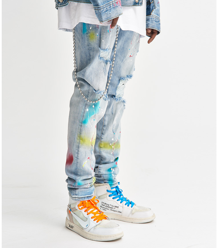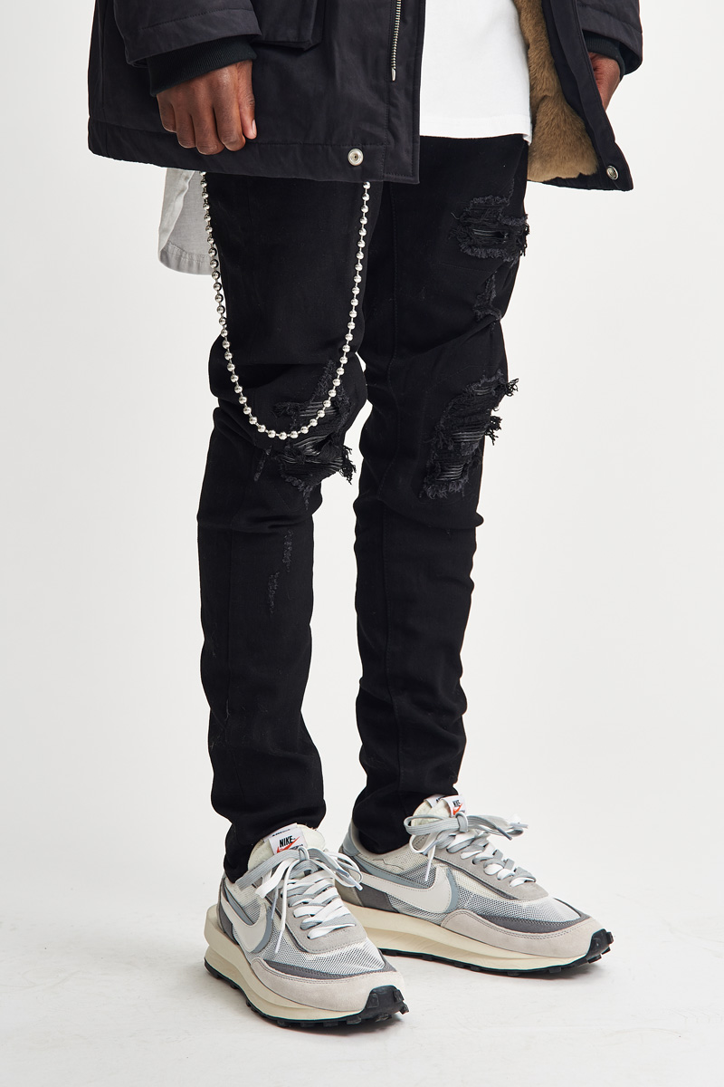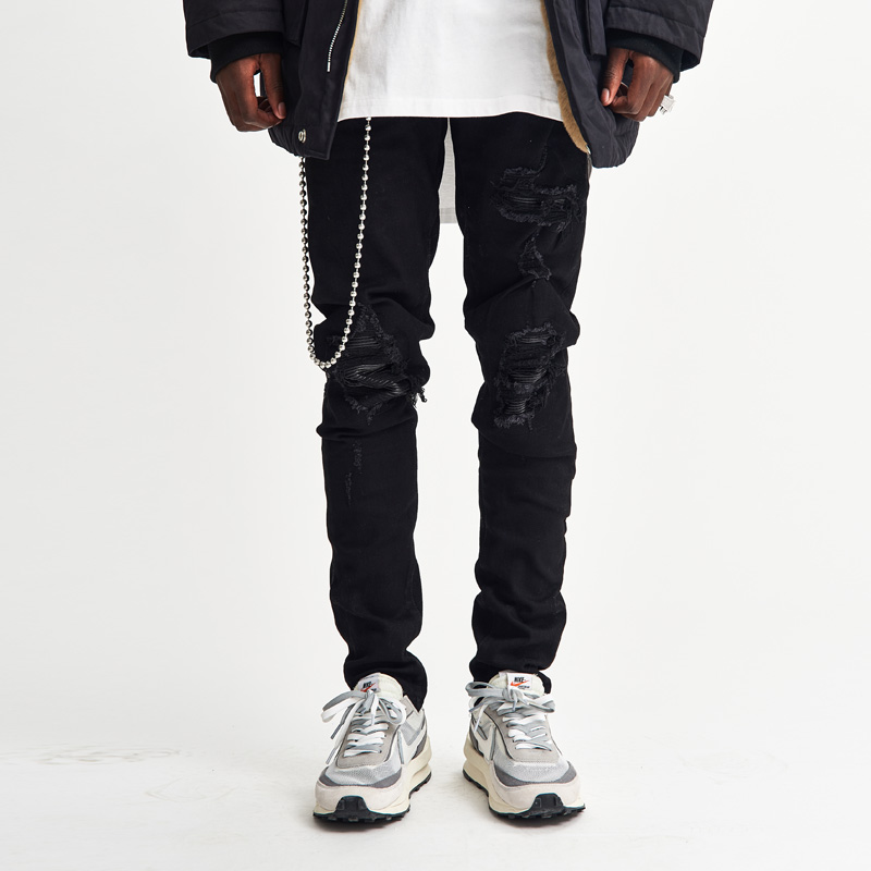 BTW BACK TO WILD TRENDY URBAN STYLE RIPPED PATCH DENIM JEAN SWEATPANTS