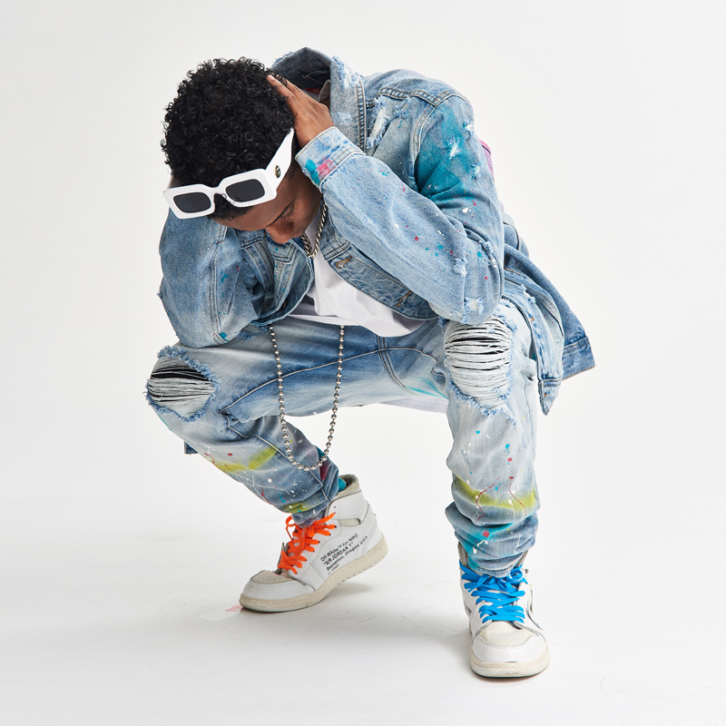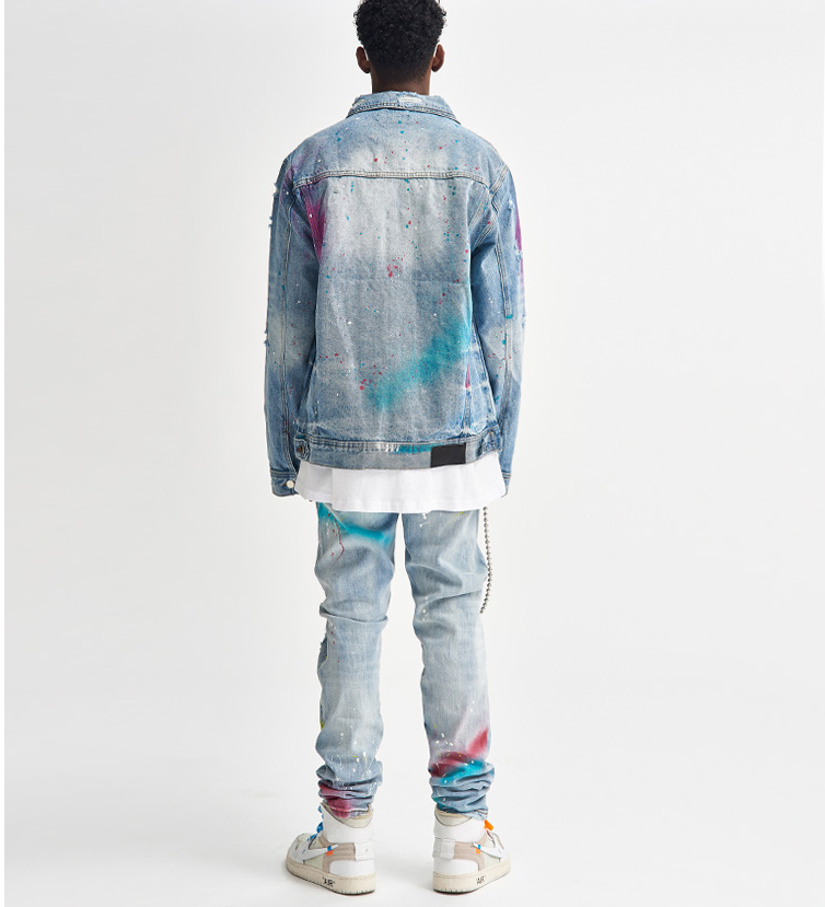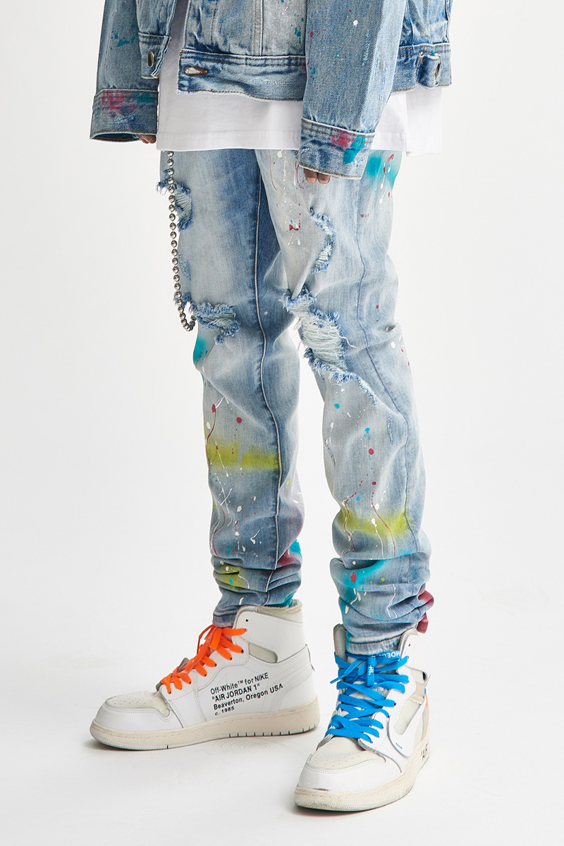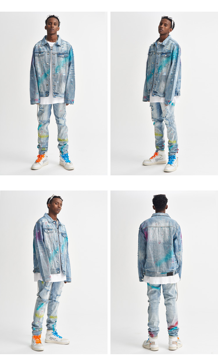 BTW BACK TO WILD TRENDY URBAN STYLE RIPPED PATCH DENIM JEAN SWEATPANTS