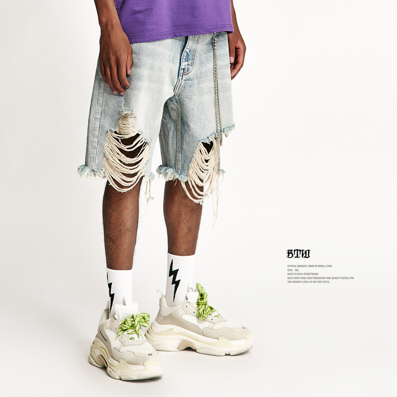 GABO ROBBA BTW URBAN STYLE RIPPED DENIM JEAN SHORT PANTS