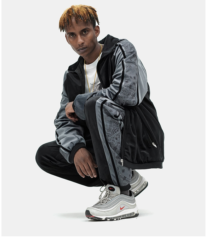 VORTEX BONSEYA BTW CASHEW FLOWER STRIPED VELVET TRACKPANTS
