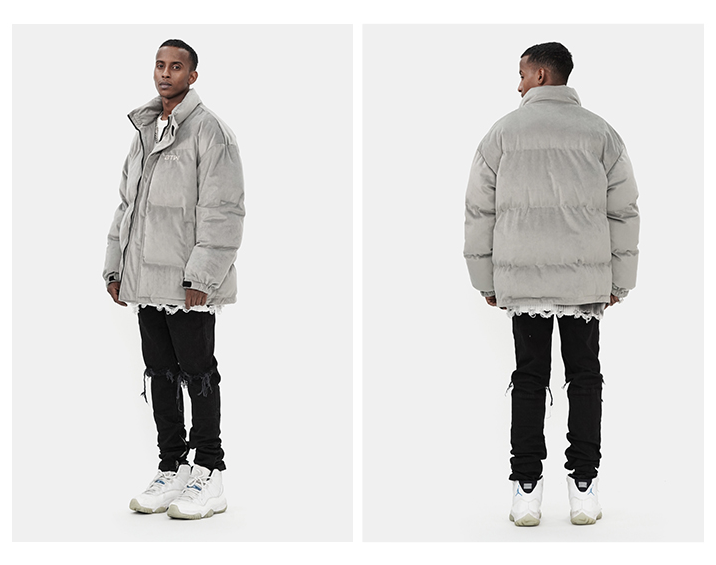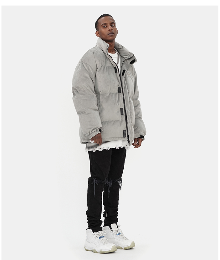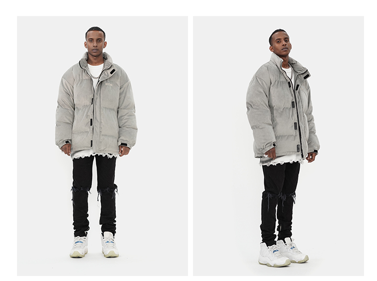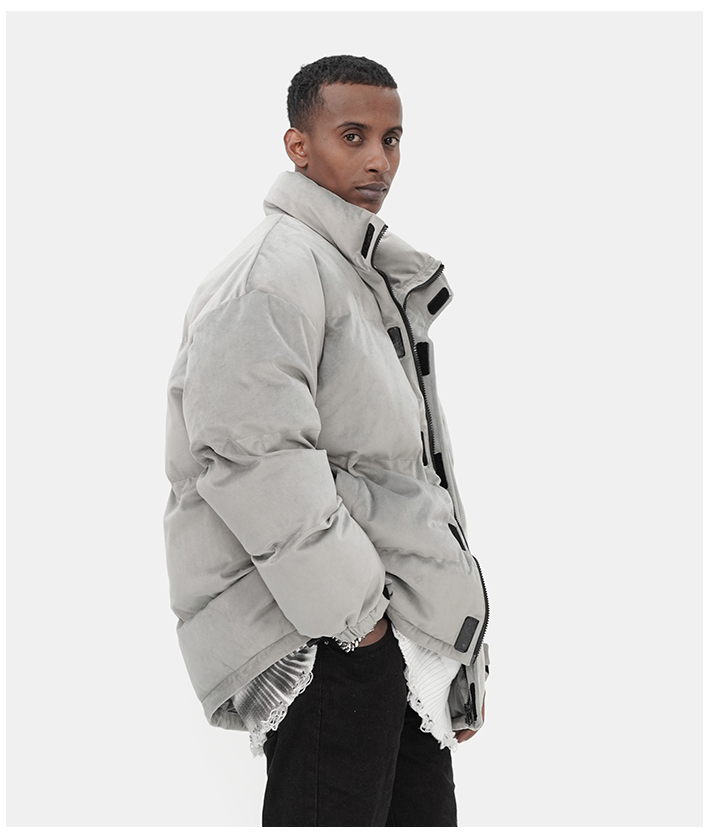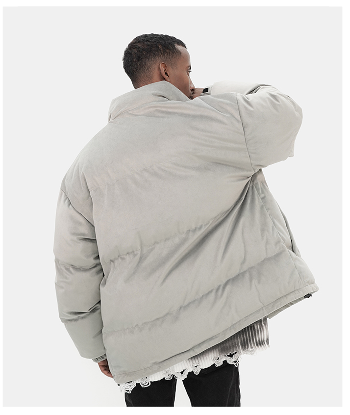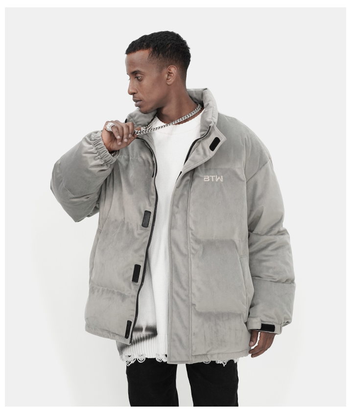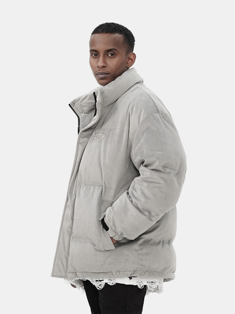MAGNO LUKE BTW HIGH NECK VELVET FLUFFY BOMBER JACKET IN GREY