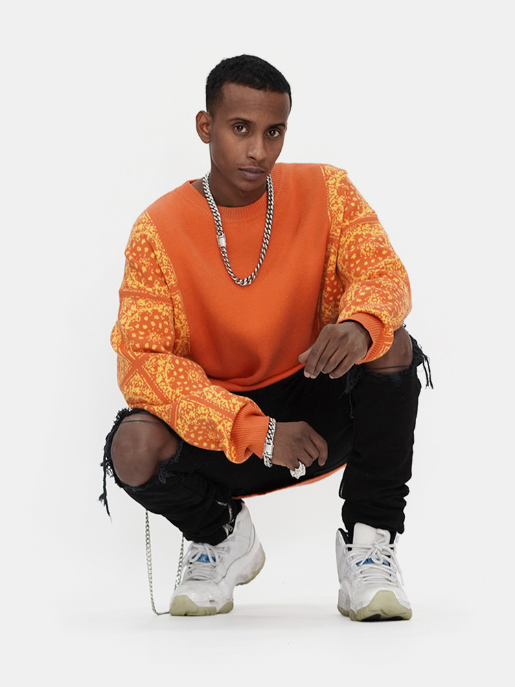 WILHEM LUKE BTW CASHEW FLOWER CREW NECK SWEATER