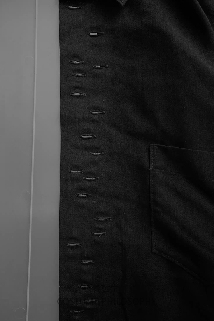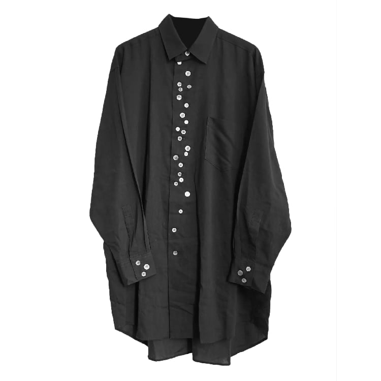 YOHJO KIMONO HIGH NECK MULTI BUTTON IRREGULAR SHIRT IN BLACK