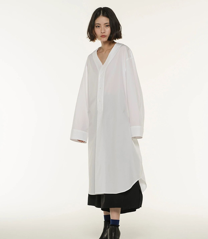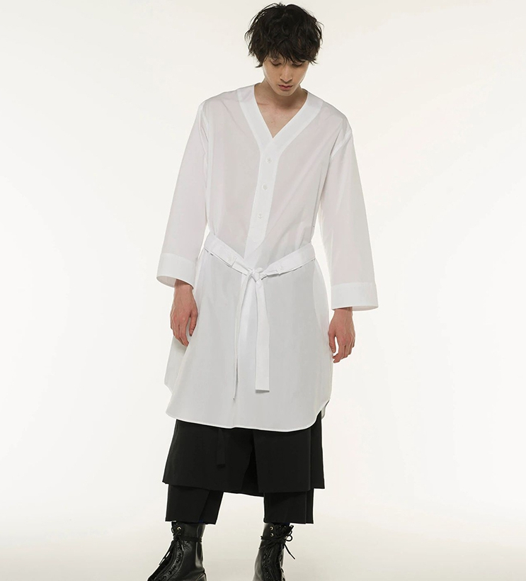 YOHJO OXYO V NECK MID LENGTH CASUAL LOOSE FIT SHIRT WITH BELT