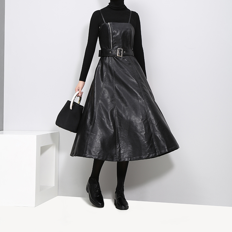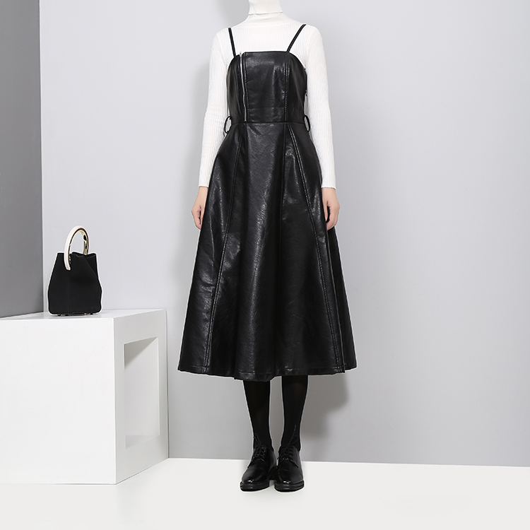 STELLA MARINA COLLEZIONE RETRO STYLE FAUX LEATHER SWING DRESS