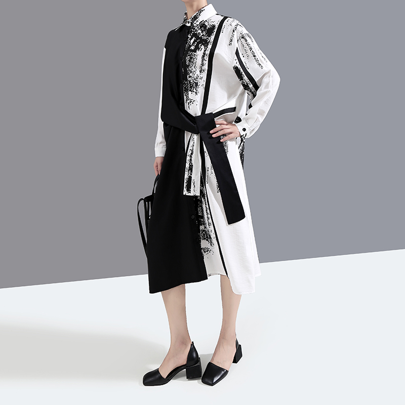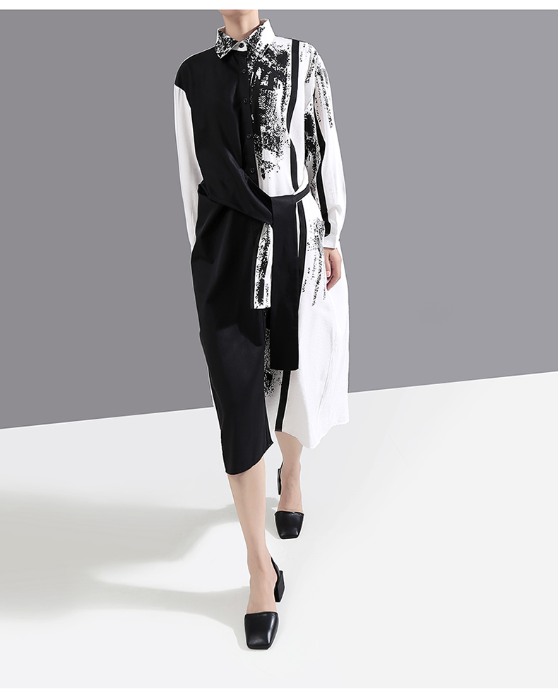 STELLA MARINA COLLEZIONE RETRO DESIGN MID LENGHT BLACK AND WHITE DRESS