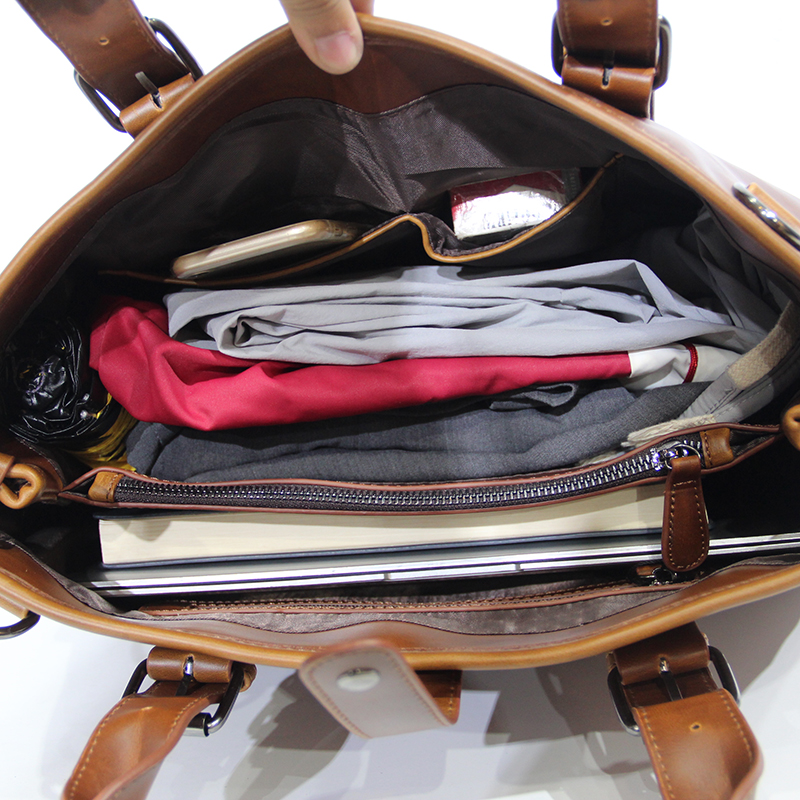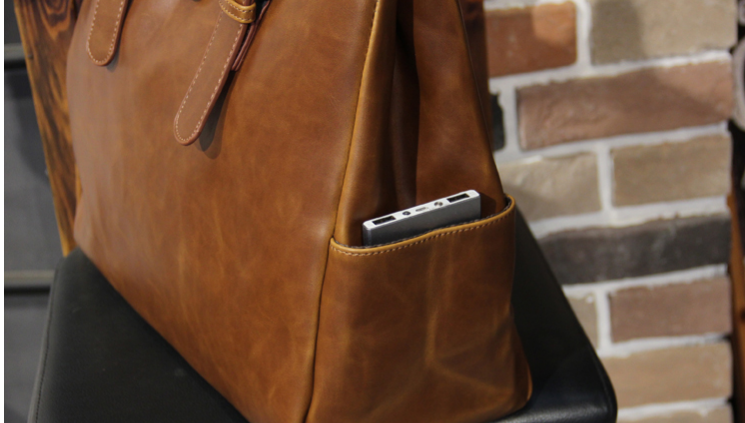 PUTTICO AREZ LEATHER BRIEFCASE HANDBAG IN BROWN